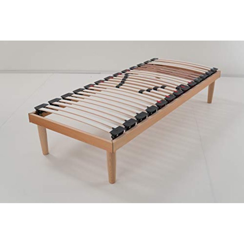 Dettagli: Le reti fisse Evolution di SONNO+ sono realizzate in multistrato di faggio in Italia da esperti falegnami per garantire qualit, durata ed estetica al giusto prezzo. Il robusto telaio di faggio di sezione mm 70×25 e si distingue per un elegante design con angolo a 45 gradi con protezione gommata antiurto e piedini conici. Il punto di forza di questa rete rappresentato dagli ammortizzatori porta doghe in Hytrel, sinonimo di affidabilit ed elasticit nel tempo. Grazie al sistema a doghe oscillanti ammortizzate con superficie antiscivolo garantita una base di appoggio ideale per qualsiasi tipologia di materasso. Inoltre, con semplici regolatori di rigidit si potr a piacimento ammorbidire o irrigidire la rete nella zona lombare e del bacino. A completare la rete 4 eleganti piedini a forma conica in faggio massello. Per la versione matrimoniale previsto un piedino centrale di sostegno. Il montaggio della rete consiste semplicemente nell’avvitamento dei piedini. CONSEGNA SICURA: doppio imballaggio di cartone. Prodotto Artigianale Made in Italy 100%