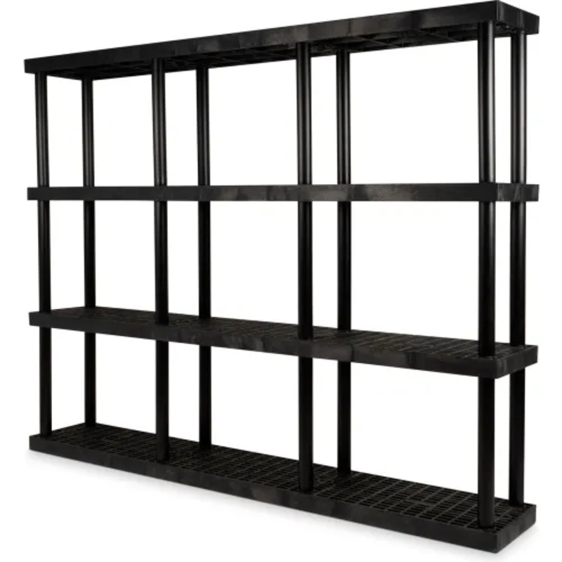 Withstands extreme temperatures in wet or corrosive environments. High density, black structural plastic resin is ideal for freezers and impervious to oils, salts, acids and most chemicals. Open grid design reduces dust accumulation, increases air and light penetration and promotes drainage. Strong 2-5/8″ thick shelves and 2-3/8″ diameter posts interlock together to form a rigid assembly. Stationary Shelf Unit has 25″ clearance between posts and 20″ between shelves. Virtually maintenance free. Steam cleanable. Quick and easy assembly, no tools required.
