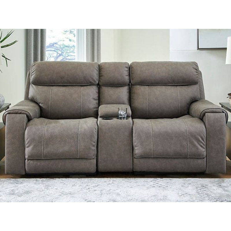 Destination: chic comfort. This power reclining loveseat with console launches your living room into superior form with stellar attention to detail. Exemplifying attainable luxury, its handsome hue has an air of sophistication youll long to lounge in. And when youre done basking in the glow of its sleek style, recline with indulgent motion features to welcome head-to-toe relaxation.