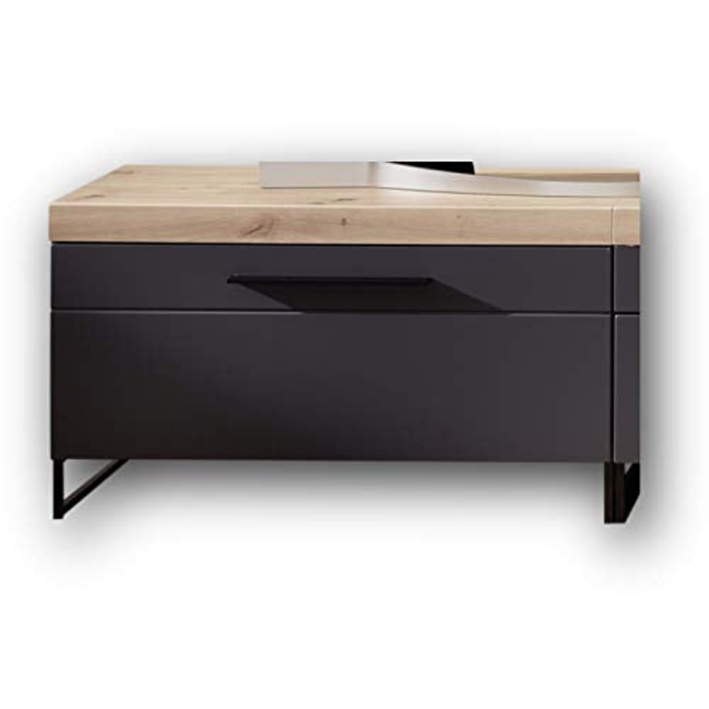 Dettagli: Dettagli del prodotto: base – 1 sportello. Colore: frontale: grafite, abs rovere artigianale. Corpo: esterno in grafite, interno in finto rovere artigianale. Spedizione e consegna: servizio di pacchi Consegnato smontato, in scatola di cartone. Materiale: truciolato rivestito. Dimensioni: 96 x 44 x 55 cm (L x P x A) Istruzioni per la manutenzione: non utilizzare solventi o detergenti abrasivi.