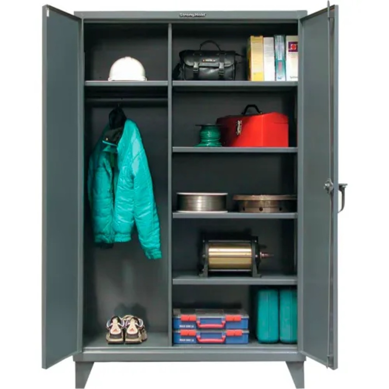 STRONG HOLD EXTRA HEAVY DUTYMAINTENANCE STORAGE CABINET "Battleship" construction for lifetime durability Superior strength 12-gauge all-welded steel body construction provides maximum protection. Solid Front Cabinet has dual doors that swing open 180 and