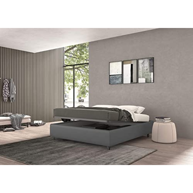 Talamo Italia Letto contenitore matrimoniale Vivaldi, Made in Italy, Struttura in ecopelle imbottita, Adatto a materasso 160×190 cm, Grigio