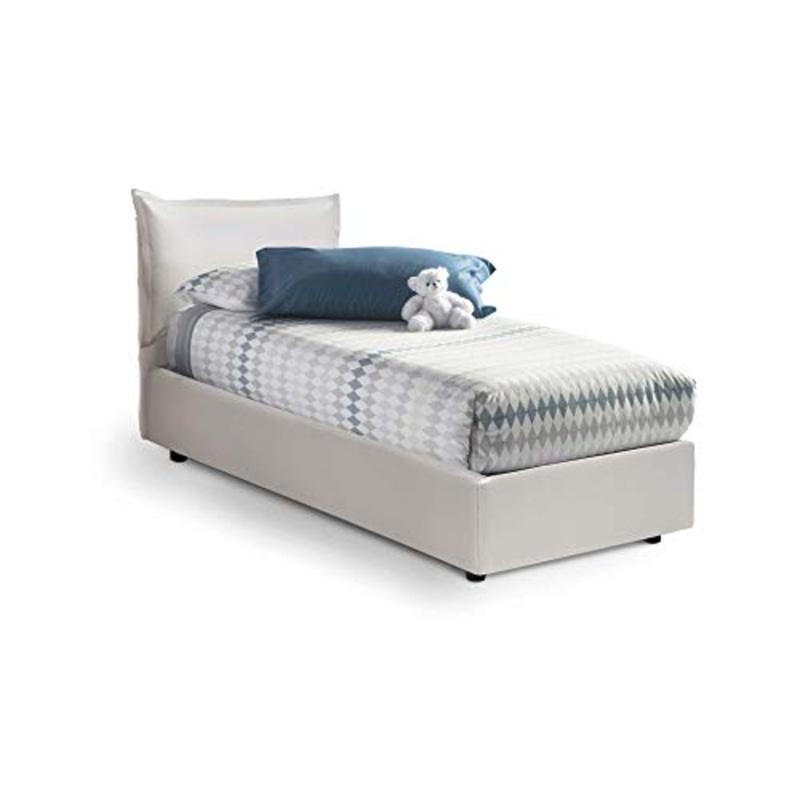 Talamo Italia Letto contenitore Singolo Veronica, Made in Italy, Letto con rivestimento in ecopelle, Apertura laterale, adatto per materasso cm 80×190, Bianco