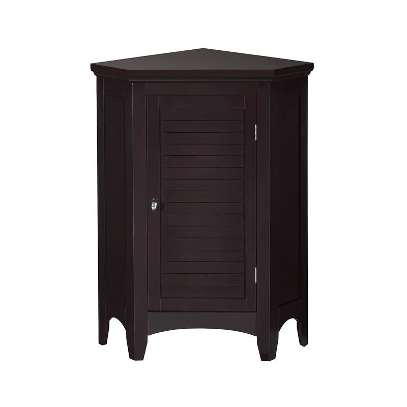 Upgrade your home storage while adding classic style with the Teamson Home Glancy Wooden Corner Floor Cabinet with Shutter Door. This decorative cabinet features a timeless dark brown finish with a crown molded top and skirting, a chrome-finished knob, a louvered door, and shaker-style legs for a beautiful addition to your space. The included interior shelf makes this cabinet perfect for your daily storage needs. Constructed from durable engineered wood with included anti-tipping hardware, this storage unit is built to provide you with long-lasting organization. Easy, step-by-step instructions and all of the hardware needed for installation are included for quick assembly. Purchase this stylish corner cabinet alone or with other items from the Glancy collection for a cohesive, updated look. The Teamson Home Glancy Wooden Corner Floor Cabinet with Shutter Door measures 24.75 x 17 x 32 and fits easily into corners to provide accessible storage without taking up too much space in your living area or bathroom.