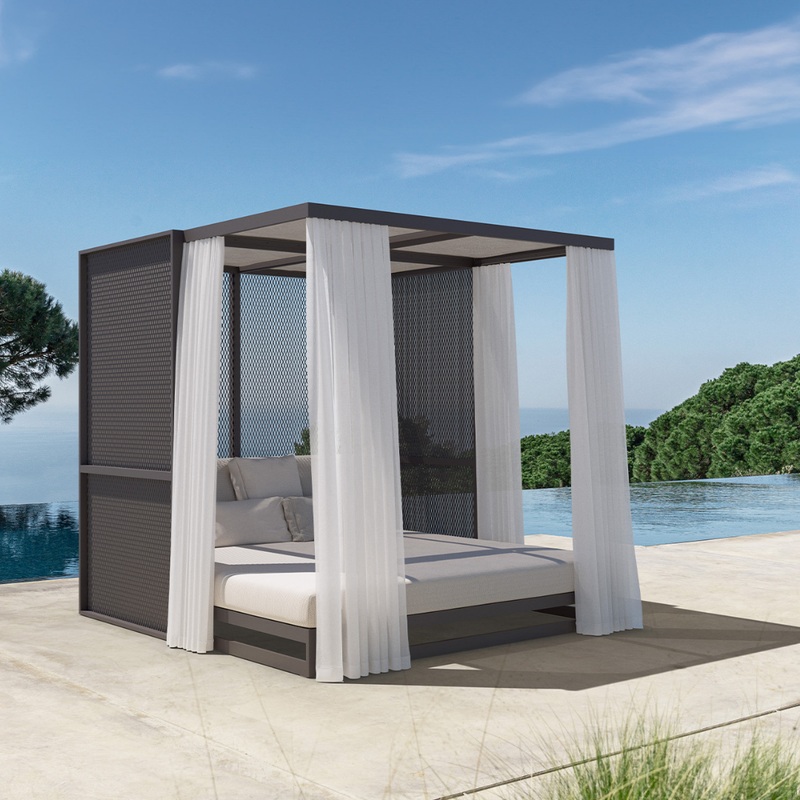 Az egyedi gyrtsra kszl The factory 2 napozgy vza, s kerete alumniumbl kszlt, amelyen nagyon knyelmes szivacsok, s prnk helyezkednek el. A flig rcsos, flig fggnys megolds pedig praktikus hasznlatot nyjt. Anyagaink szles sznvlasztkban llnak rendelkezsre, mel