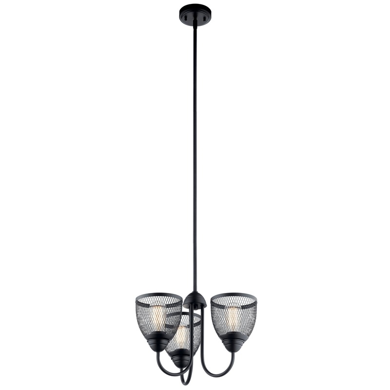 Specifications for this Kichler Three Light Chandelier/Semi Flush MountThe Voclain(TM) 12.5in. 3 light convertible chandelier/semi flush features a distinctive industrial look with its Black metal mesh shade. A perfect addition in several aesthetic environ