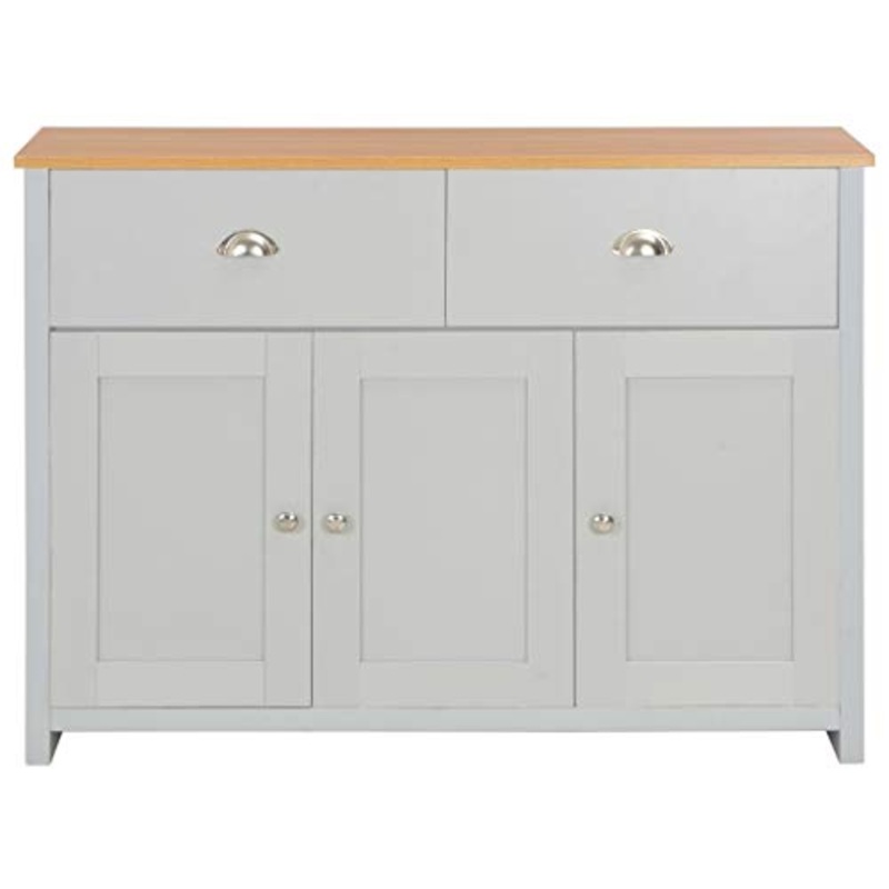 Marca: TidyardColore: GrigioCaratteristiche: Questa credenza, dotata di scomparti per riporre i propri accessori, un'aggiunta senza tempo al vostro arredo interno.La credenza realizzata in truciolato con melamina ed molto robusta e resistente.Il suo piano