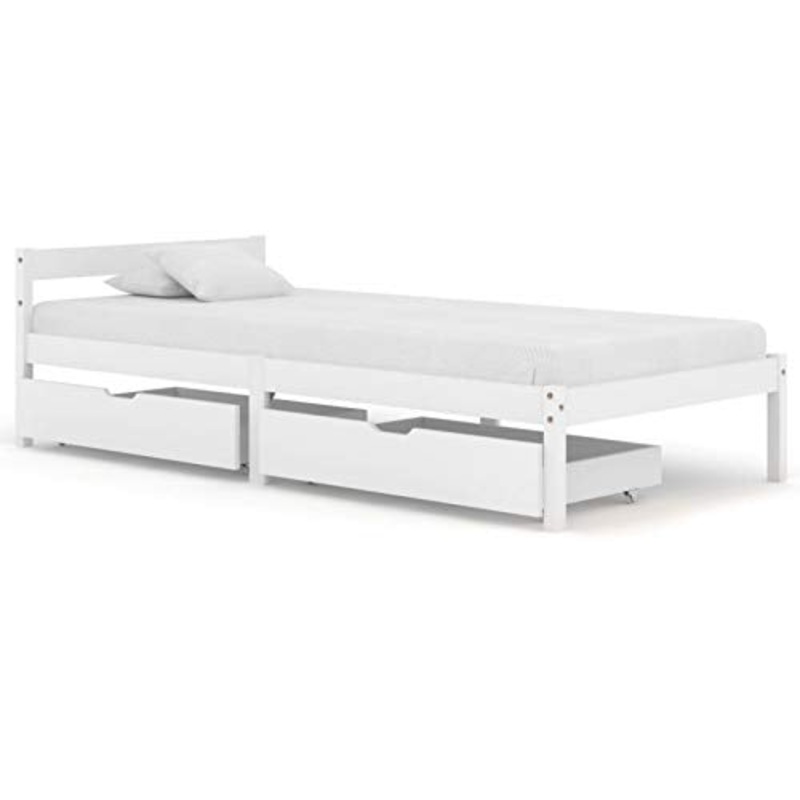 Tidyard Giroletto con 2 Cassetti Bianco in Massello di Pino 100×200 cm,Robusto e Resistente