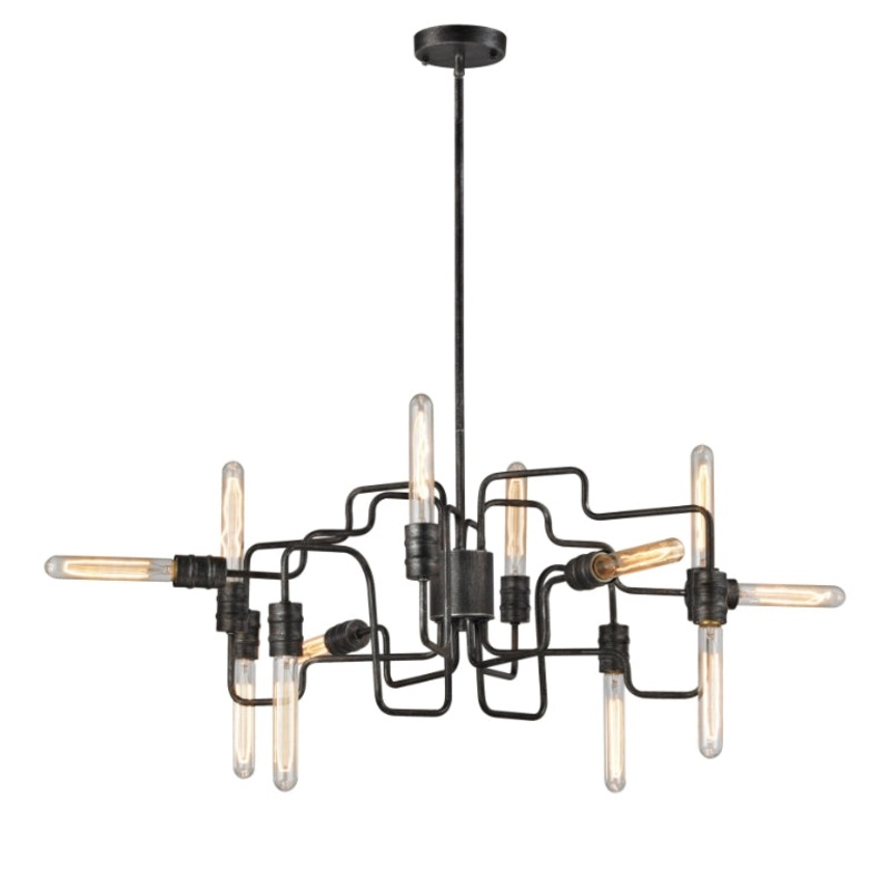 The Transit collection is one of controlled chaos, with multiple right angle curves on each arm and each light pointing at a different angle. A modish silvered graphite or matte gold finish, and optional vintage filament bulbs complete this energetic prese