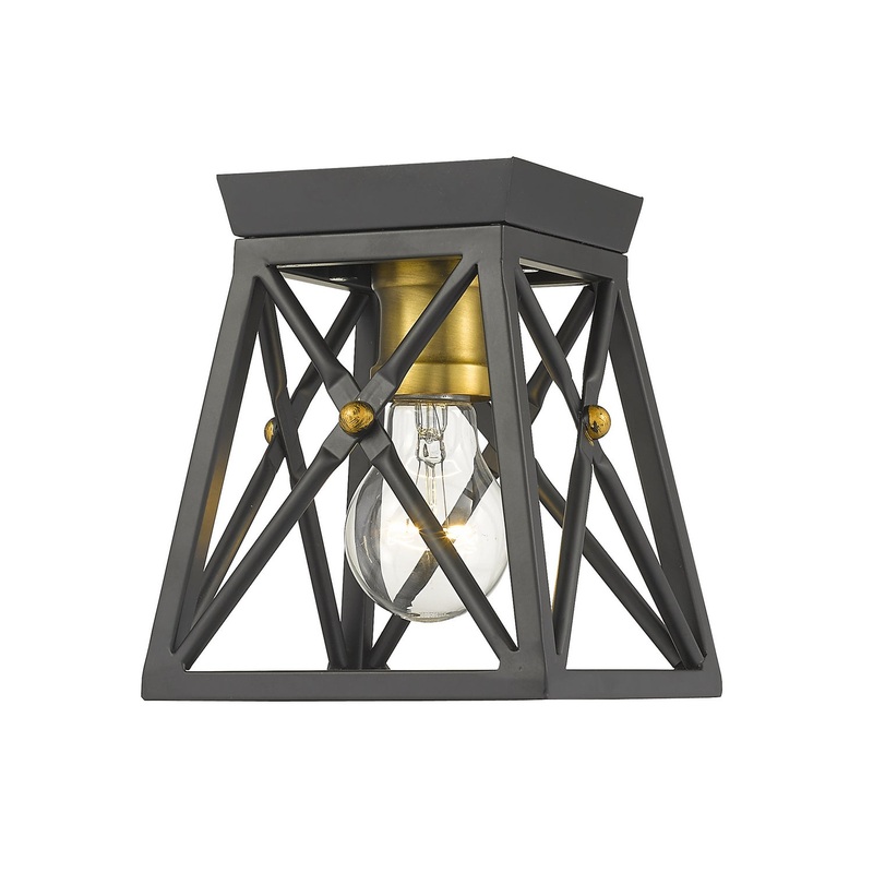 Indulge in an exercise of geometrics and stunning interior dcor, adding this single-light flush mount ceiling light to a compact living space. Dramatic Matte Black delivers a bold finish to a cage-style metal shade that nestles a wide bulb mount with a rich Old Brass finish, creating a custom look for a transitional setting.