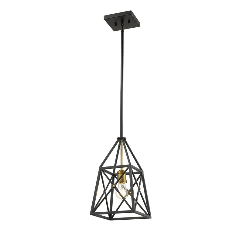 Indulge in an exercise of geometrics and stunning interior dcor, adding this single-light mini-pendant to a compact living space. Light up a nook or reading space with a stylish Matte Black finish cage shade harkening back to an industrial motif, and a gorgeous Old Brass bulb mount that delivers perfect contrast.