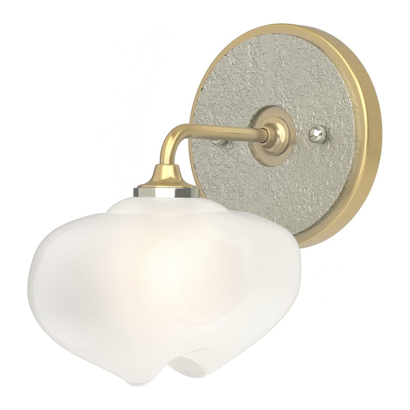A botanical aesthetic, the Ume’s unique Japanese plum blossom shaped frosted glass gives a feminine feel to a bath environment. Glass options also include grey and clear glass thumbprint shades. The Ume 1-Light Curved Arm Bath Sconce is available in Black, Oil Rubbed Bronze, Vintage Platinum, Soft Gold, Sterling and Modern Brass.