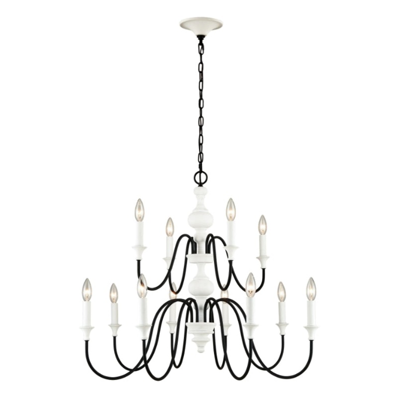 The Val de Loire chandeliers exude French Country charm with thin metalwork that emanates from a spun center column. The white coral finish has a textured surface that sharply contrasts the black hardware.36W x 36D x 28HSpecifications:Item Brand: Elk Showr