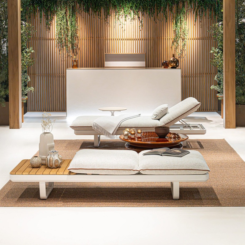 Elegns formk, esszencilis eszttika s semleges tnusok: ez a Venice napozgy, a kifinomultsg s a knyelem kiegyenslyozott keverke. A puha krpitozs knny s lgies szerkezeten nyugszik. Alumnium vz, kombinlva a terrakotta szn, mbrbl kszlt, dupla szl prnkkal. Lehetsg teakfa rszletek hozzadsra s teljes testreszabhatsgra az sszelltsban.