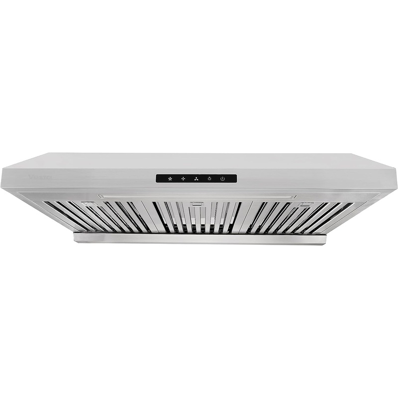 Vesta Arlington 850 CFM Powerful 30 Inch Under Cabinet Range Hood With Seamless Stainless Steel Body, Twin Turbo Motors, 3 Speed Touch Screen, Round Vent, Baffle Filters, LED Lights, Oil Collector Powerful Dual Motors & 850cfm SuctionEquipped with dual mot