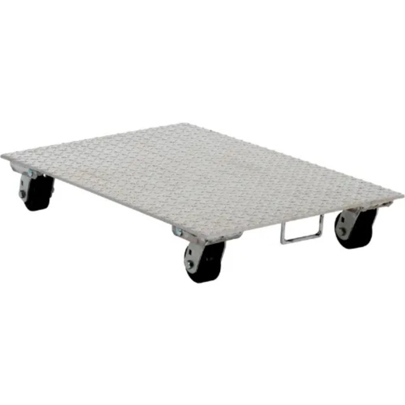 Move machinery or heavy cases and cartons. Solid Aluminum Deck dolly has non-corrosive, slip-resistant diamond plate surface, integral pull handle and 6" deck height. Four swivel 4" casters.