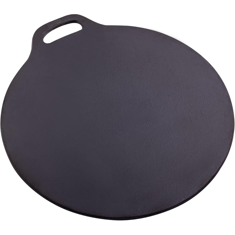 • MADE FOR GREAT MEALS: Our cast-iron dosa tawa pan has excellent heat retention and distribution that keeps your food hot and ready to serve. It also has an ergonomic loop handle for extra stability. Make delicious pizza, bacon, pancakes, dosas, roti, cookies, or vegetables with this round budare.