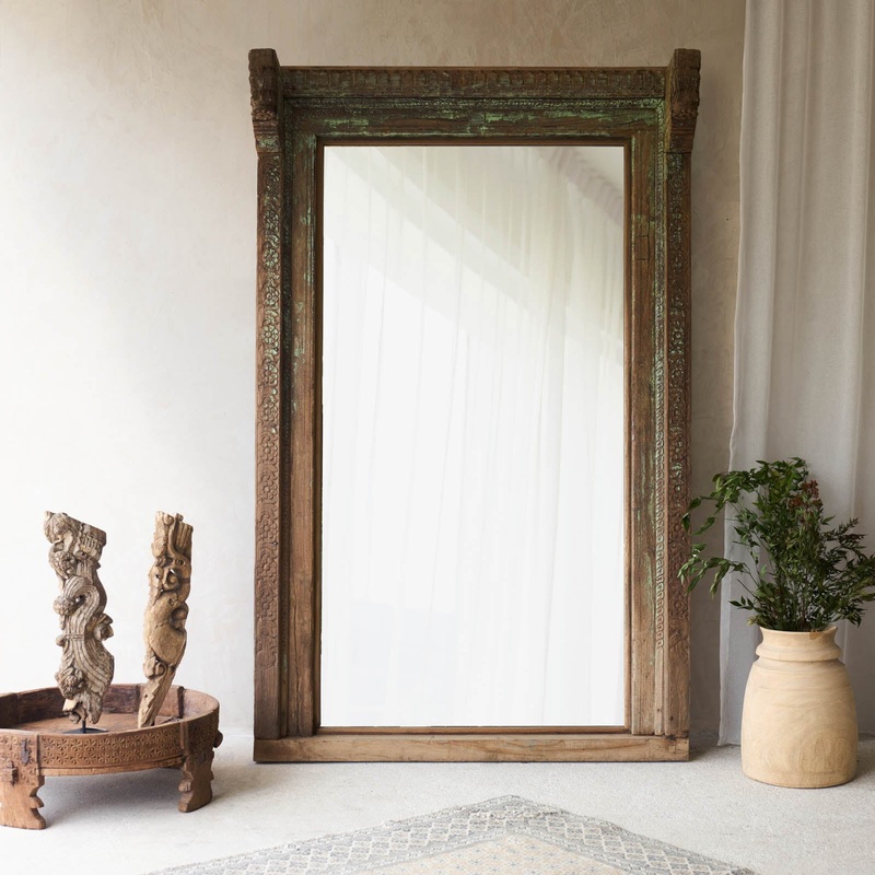 Originated from Rajasthan, India, each vintage mirror tells its own story. These frames are adorned with intricate carvings, details and hand-painted accents, showcasing the artistry and craftsmanship of the locals.