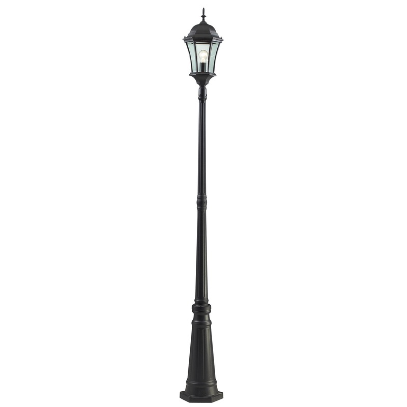 For a bold look, this post light is sure to please. Using bold detailing finished in black, and clear beveled glass for a bright spill of light, this fixture is sure to create a unique and bold statement. These fixtures are made of aluminum for years of du