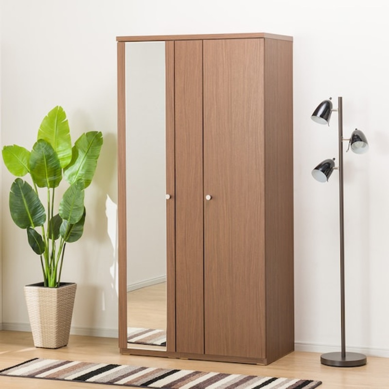 This wardrobe comes with a large mirror on the door to show your whole body, which is useful for checking your appearance before going out.