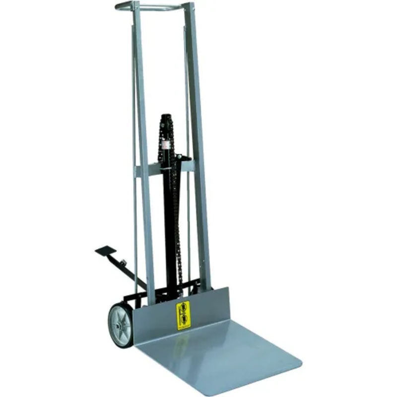 Wesco TWO WHEEL PLATFORM STYLE FOOT PEDAL LIGHTWEIGHT ALUMINUM LIFT TRUCKSave time and man power. Ideal for areas where hand trucks are accessible and larger lifts are not. Only 60 lbs. of effort is needed to lift a full load. Lift 1-1/4 vertical inches wi