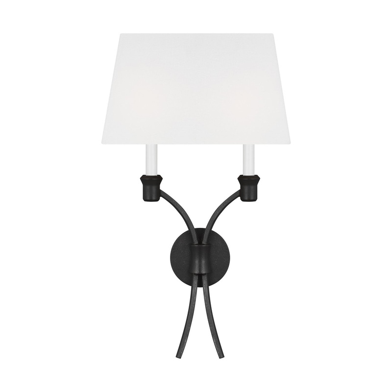A stunning addition to an entryway, great room, or above a large dining table, the Westerly sconces designed by C&M by Chapman & Myers features flowing arms and an exposed candelabra. The sculpted lines and hook with loop detail at the top and on the canop