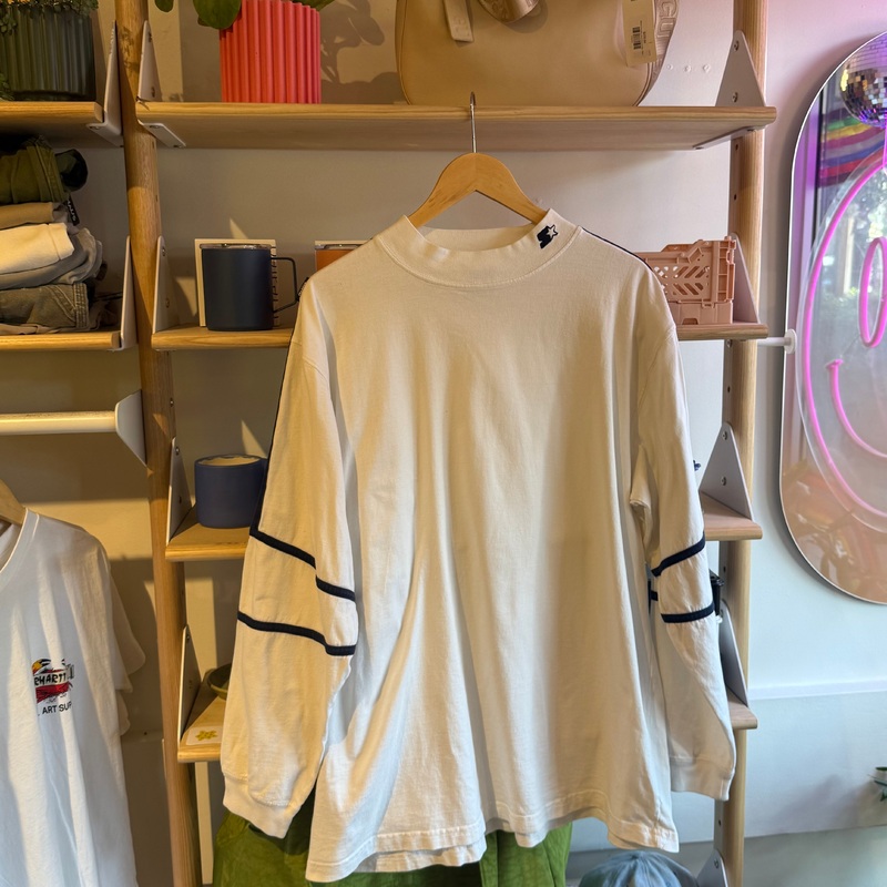 Brand: StarterWhite long sleeve teeMeasurements: 48" Chest, 20" Shoulder to Shoulder, 24" Arm Length, 30" Shoulder to Hem*Vintage and preloved items are as-is and final sale.