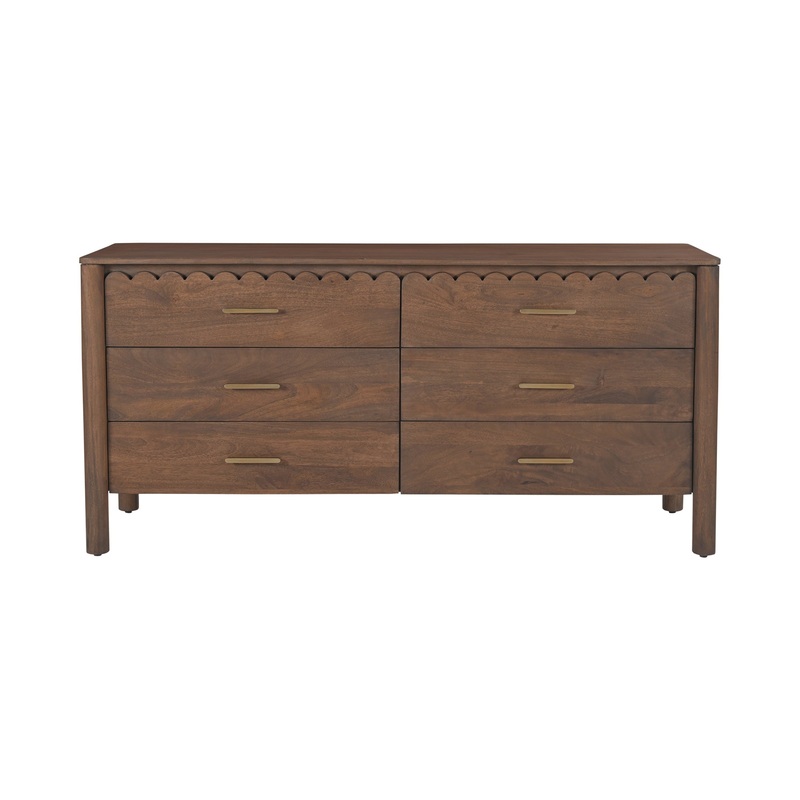 Modern aesthetics effortlessly blend with the refined simplicity of traditional Shaker design in the Wiley desk. Meticulously crafted, its elegant form is defined by sleek, geometric curves that add a captivating touch of modernity. The post legs stand as pillars of strength, grounding the desk with their understated presence. A showcase of intricate scalloped edge details to the faces of the three drawers lends a timeless charm reminiscent of classical influences.