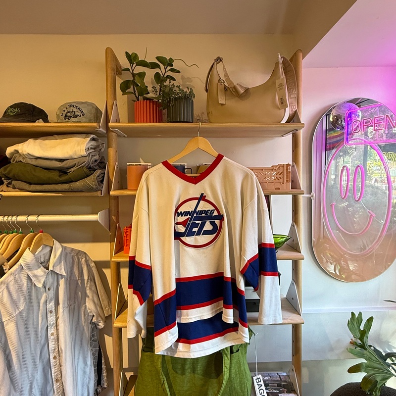 White Winnipeg Jets Jersey "Goals for Kids"Chest 48" shoulder to shoulder 22", arm length 19", shoulder to hem 24".*Vintage and preloved items are final sale.