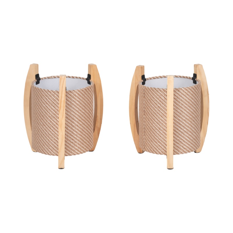 The Sagebrook Home Wood Cylinder Tripod Table Lamps with Khaki Finish offer a trendy and minimalist design that complements various decor styles, adding elegance to any room. These two versatile table lamps are perfect for placement on bedside tables, desk