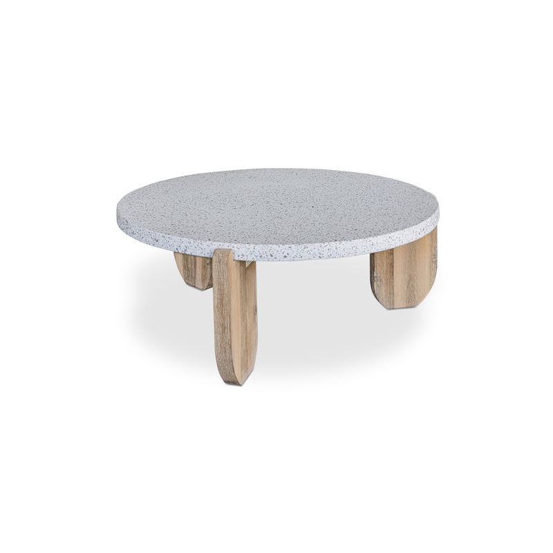 Ancient inspiration meets design innovation as the Wunder coffee table takes a monolithic statement into a low-profile silhouette. A round terrazzo tabletop perfectly matches the organic texture and sturdy support of solid acacia legs, the bold design offset by soft rounded edges.