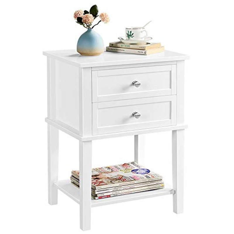• Spazioso: questo comodino presenta due cassetti nella parte superiore e un vano nella parte inferiore, i quali offrono ampio spazio per ordinare le tue cose. Sul vano inferiore puoi riporre oggetti di uso quotidiano e di dimensioni maggiori; invece, nei cassetti al livello superiore, si possono sistemare articoli come quaderni, riviste, intimo e caricabatterie. Il piano del comodino adatto per qualche decorazione a vostro piacimento.