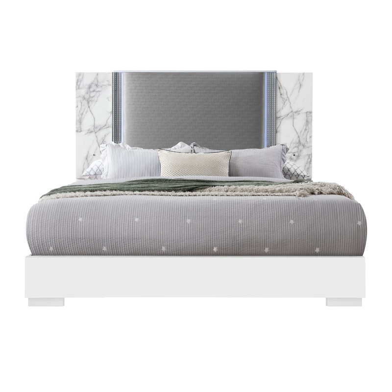 Ylime – King Bed With LED – White Marble