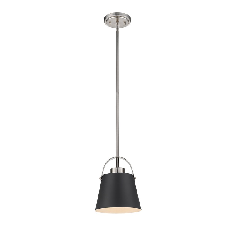 Classic industrial style adds a casual influence to this transitional single-light pendant, a superb choice for a kitchen or entertaining space. With a tapered matte black finish metal shade and brushed nickel finish steel frame, it offers up a relaxing aesthetic with plenty of personality.