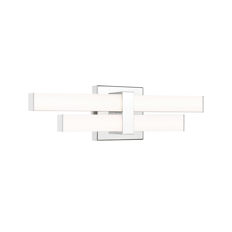 Minimalism turns striking and full of personality as this contemporary two-light vanity light takes shape in a custom bathroom. Aluminum framing and accents offer a chrome finish, as graduated frosted bar diffusers align vertically to emit dimmable LED lig