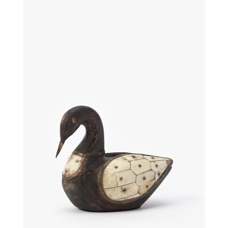 Stately and vintage-inspired, the Zella Swan Object is made from wood and iron, featuring an intricate bone inlay. With contrast and exquisite detail, the decorative object adds artistic sophistication to your vignettes.