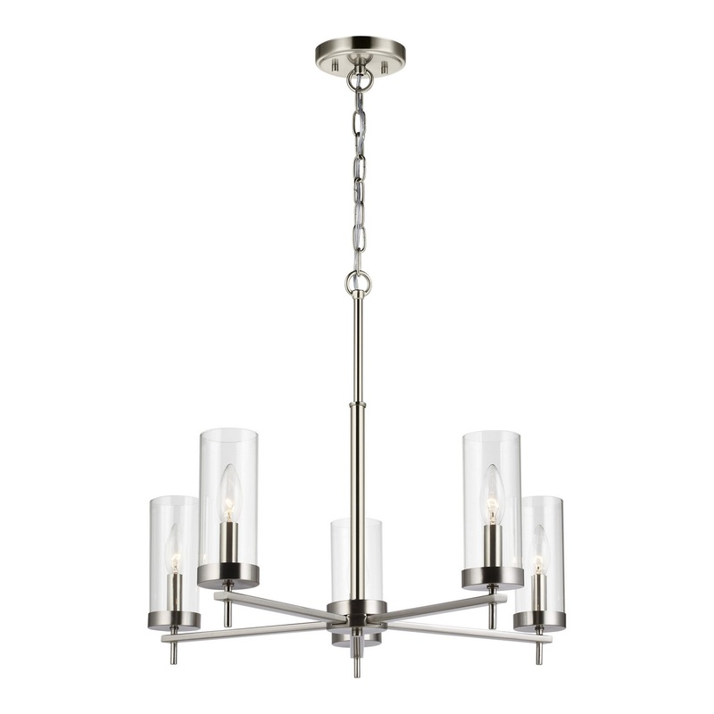 The Zire five light single tier chandelier in brushed nickel uses LED bulbs to save you both time and money. Zire embodies simple clean lines in three finishes that strike a perfect balance of elegant yet minimalist design. Each of the lights sits on the r